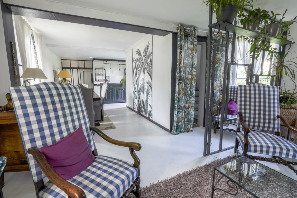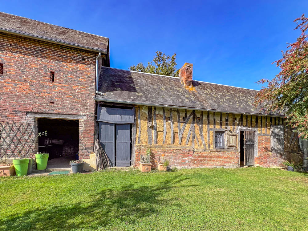 Belle longère en briques et colombages, toit en ardoise avec deux bâtiments attenants, vue sur campagne et sans vis-à-vis.