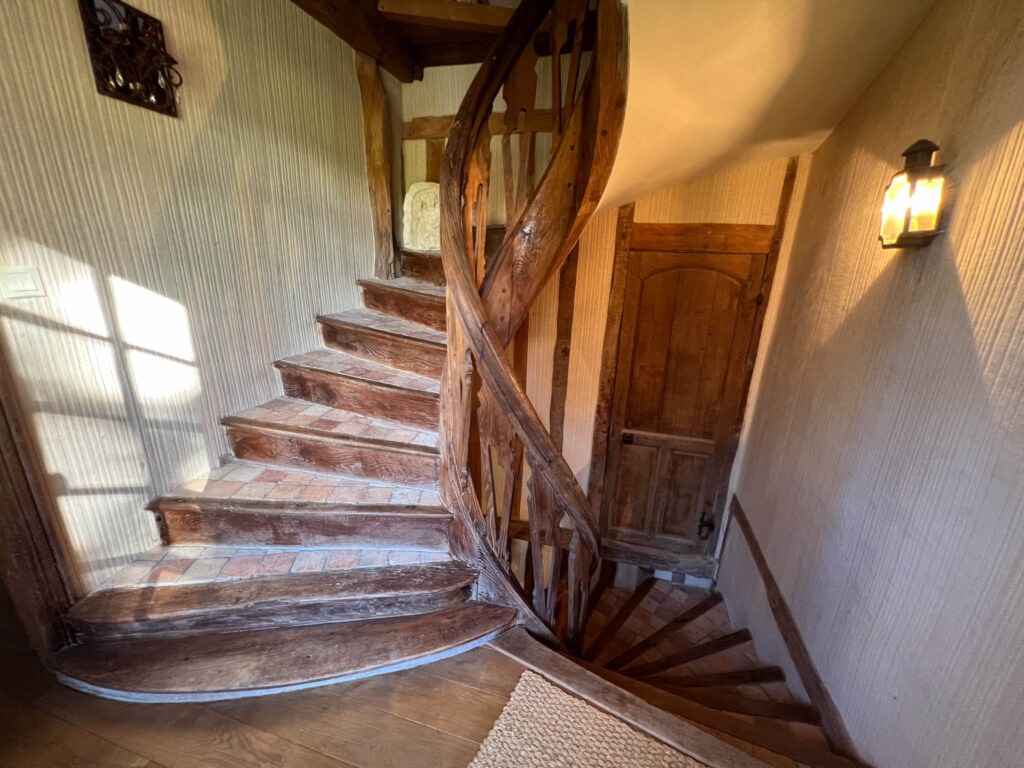 Derrière un portail électrifié, un parc arboré traversé par la rivière Viette contient : – Un manoir en très bon état en colombages de 190 m2 environ, le toit recouvert de tuiles anciennes se composant comme suit : Au RDC traversant dont le sol est recouvert de tomettes anciennes, une entrée avec un escalier d’époque à main courante, à droite une pièce faisant office de salle-à-manger (possibilité chambre) se prolongeant par une salle-de-bains avec WC, lavabo etplacard. A gauche de l’entrée un grand salon avec une alcôve en angle, grande cheminée en pierre blanche avec poêle. Puis en enfilade une cuisine aménagée lumineuse . Au premier étage, sol en parquet de chêne, une chambre avec salle-de-bains, WC et lavabo, un grand salon avec cheminée et poêle, une autre chambre avec salle-de-douche, lavabo et WC. Au deuxième étage ont été aménagées une petite chambre, une grande chambre avec sa salle de douche, WC et lavabo. Le confort est assuré par le chauffage au bois et des radiateurs électriques. L’assainissement est de type tout-à-l’égout. – Un bâtiment en colombages et toit en tuiles fermé aux deux tiers offrant un double garage et un atelier d’un côté et une terrasse couverte de l’autre. Le tout sur un terrain de 9 923 m2 , un parc valloné bien entretenu avec de grands arbres et scindé par une rivière. Chauffage électrique et bois, alarme.