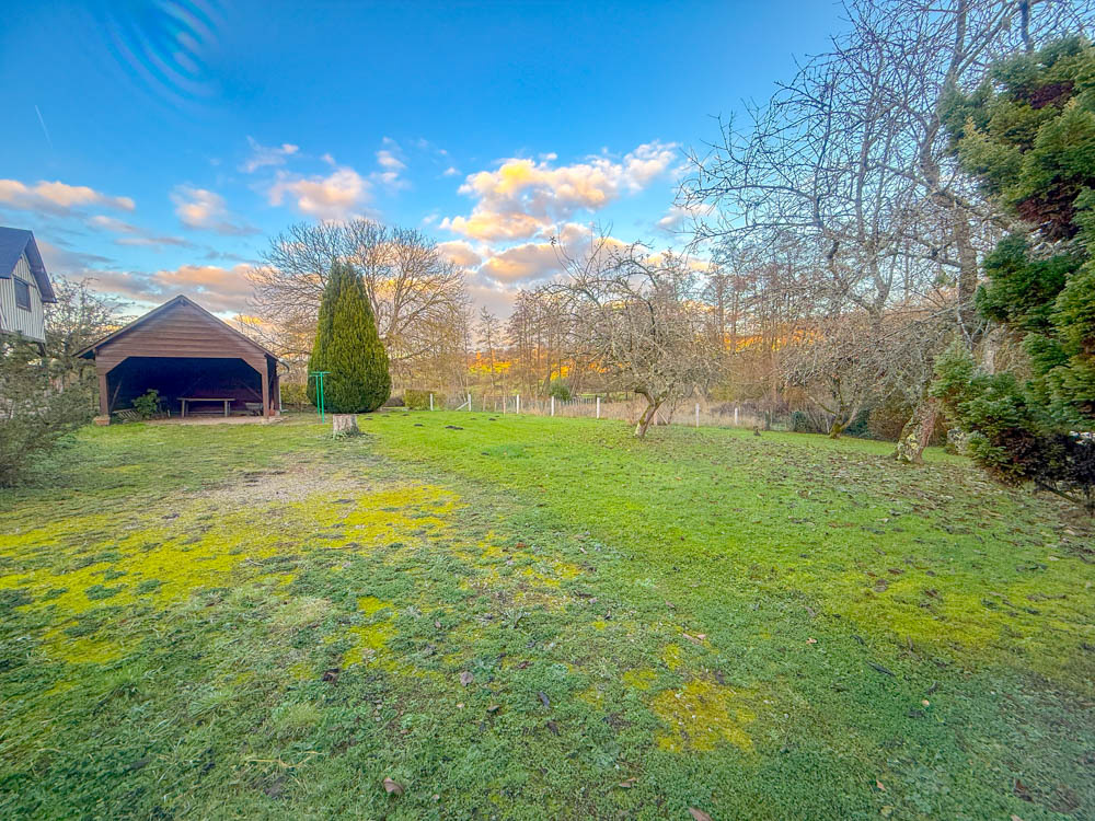 La maison est entourée d’un jardin d’agrément et d’un herbage qui descend jusque la Touques donnant sur une petite plage ou par le biais d’un lavoir.