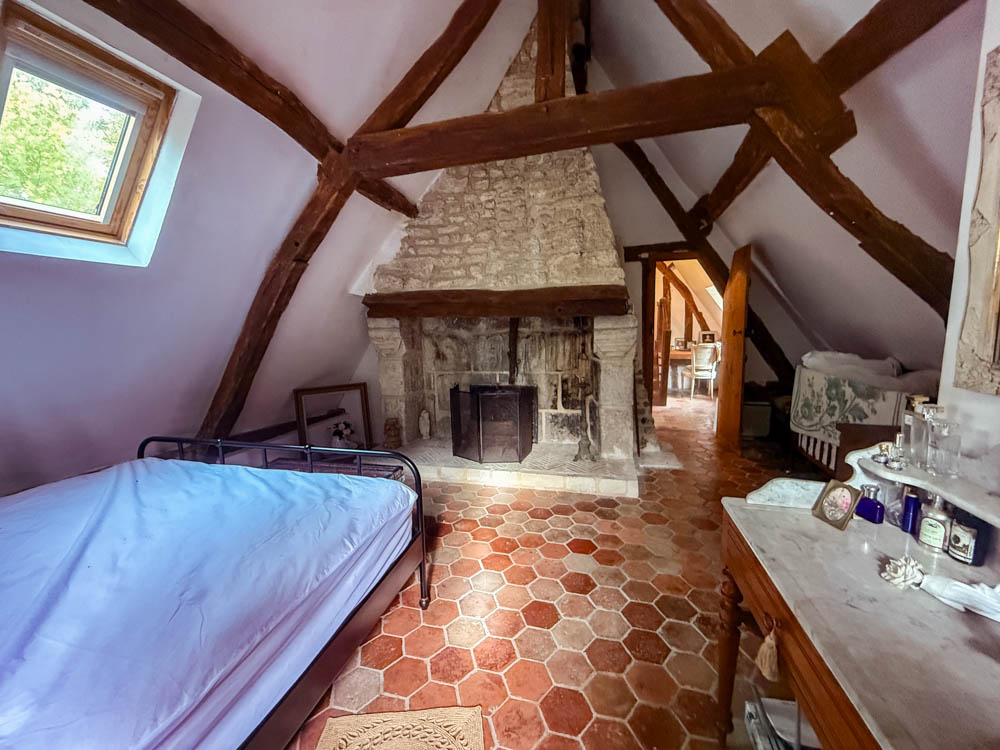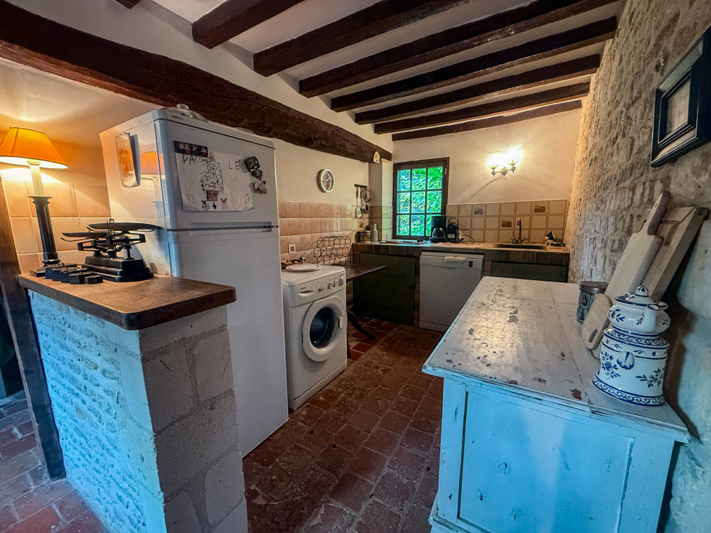Au calme dans une impasse, une maison d’habitation construite en colombages, couverte de tuiles plates a su garder ses élements dorigine : superbes cheminées, tomettes, poutres.