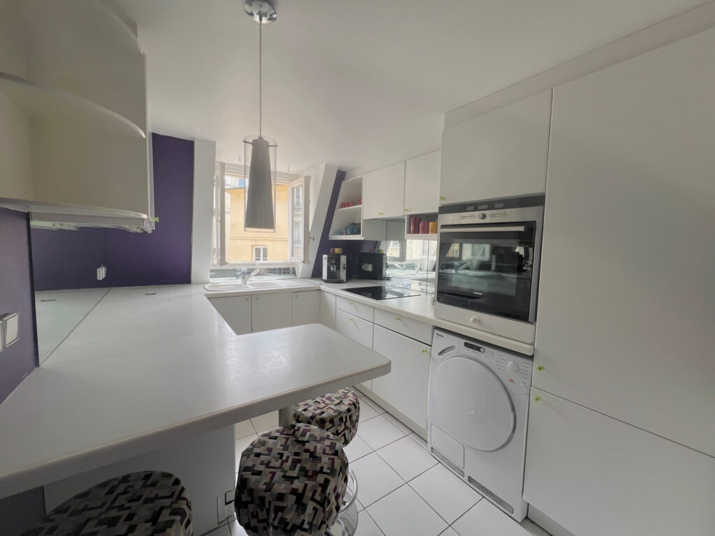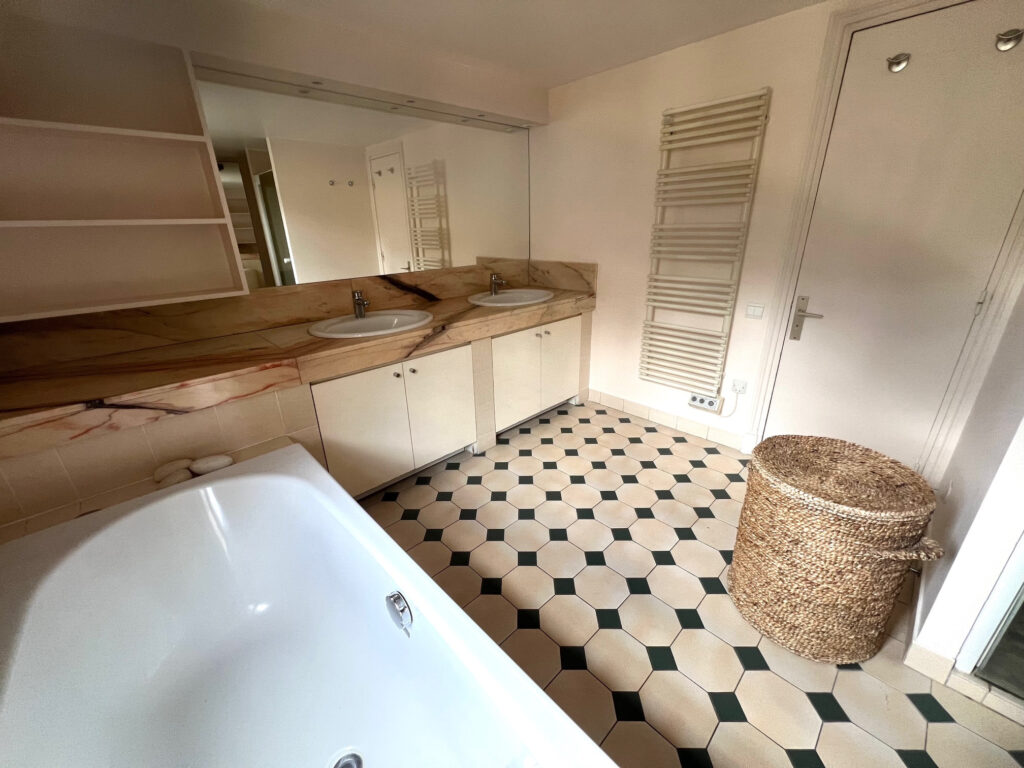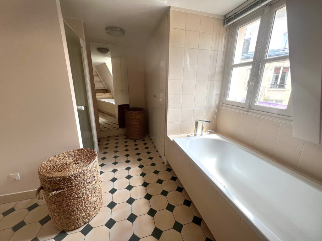 Derrière le Panthéon, près d’Emily in Paris! Au quatrième et cinquième avec ascenseur, un duplex aux derniers étages avec vue sur les toits de Paris d’une surface Carrez de 116,69 m2 et une surface au sol de 143,86 m2 .L’entrée avec placards donne sur une grande pièce à vivre faisant office de salle-à-manger et salon avec mezzanine. A droite un dégagement conduit à des WC d’invités séparés avec lavabo séparé puis une cuisine aménagée. Du salon une porte sépare la suite parentale avec dressing et salle-de-bains avec baignoire, douche, double vasque en marbre et WC séparés.Du salon un escalier monte vers la mezzanine qui dessert les trois autres chambres dont une a sa salle-de-bains avec baignoire, lavabo et WC.Le confort est assuré par le chauffage électrique et la climatisation.Une cave sèche avec rangements complète ce bien.Possibilité d’acquérir en plus une place de parking dans un immeuble voisin .(Honoraires charges vendeur)Les informations sur les risques auxquels ce bien est exposé sont disponibles sur le site Géorisques : www. georisques. gouv. fr