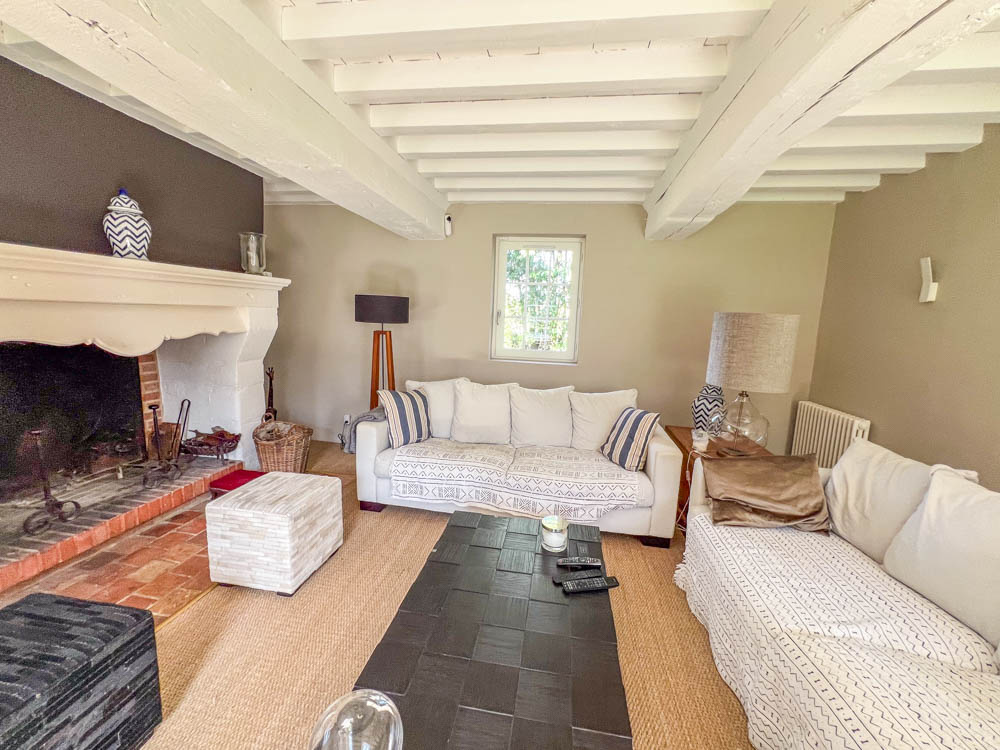 Au RDC, une cuisine dinatoire avec poêle dans insert, un slaon avec cheminée, un grand bureau pouvant faire office de chambre ou de deuxième salon.