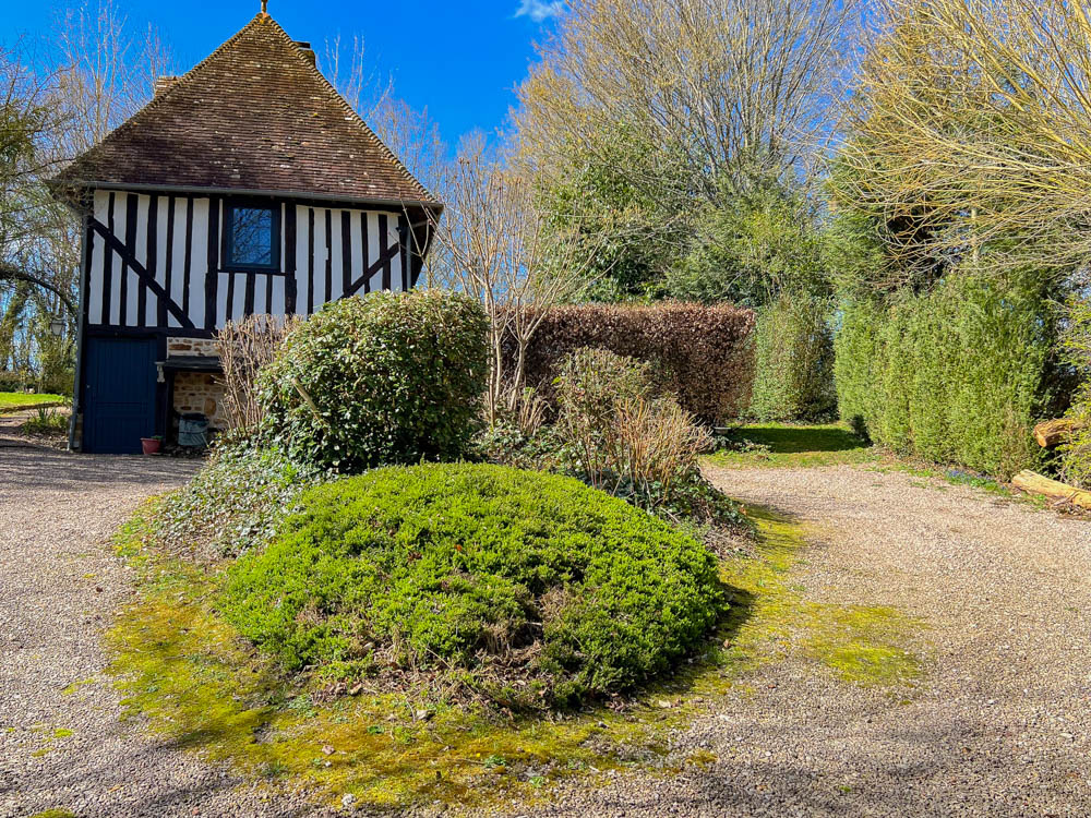 Bien caché par des haies, au milieu dune nature préservée sans voisinage, on découvre, passé un portail, une allée qui monte à cette belle longère entourée d’un jardin anglais, cette maison en colombages et tuiles anciennes entièrement rénovée dans un goût du jour, peintures anglaises, meubles flamands, alliant un confort contemporain mêlé à une nature comme un écrin.