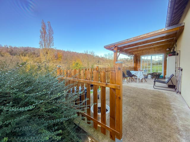 Un garage, un jardin d’agrément et un pâturage compltent l’ensemble. Isolée énergétiquement et les huisseries en double-vitrage, elle bénéficie d’une grande terrasse semi-couverte avec une vitre, terrasse qui donne sur la vallée. Le confort est assuré par un insert à bois et des radiateurs électriques récents.